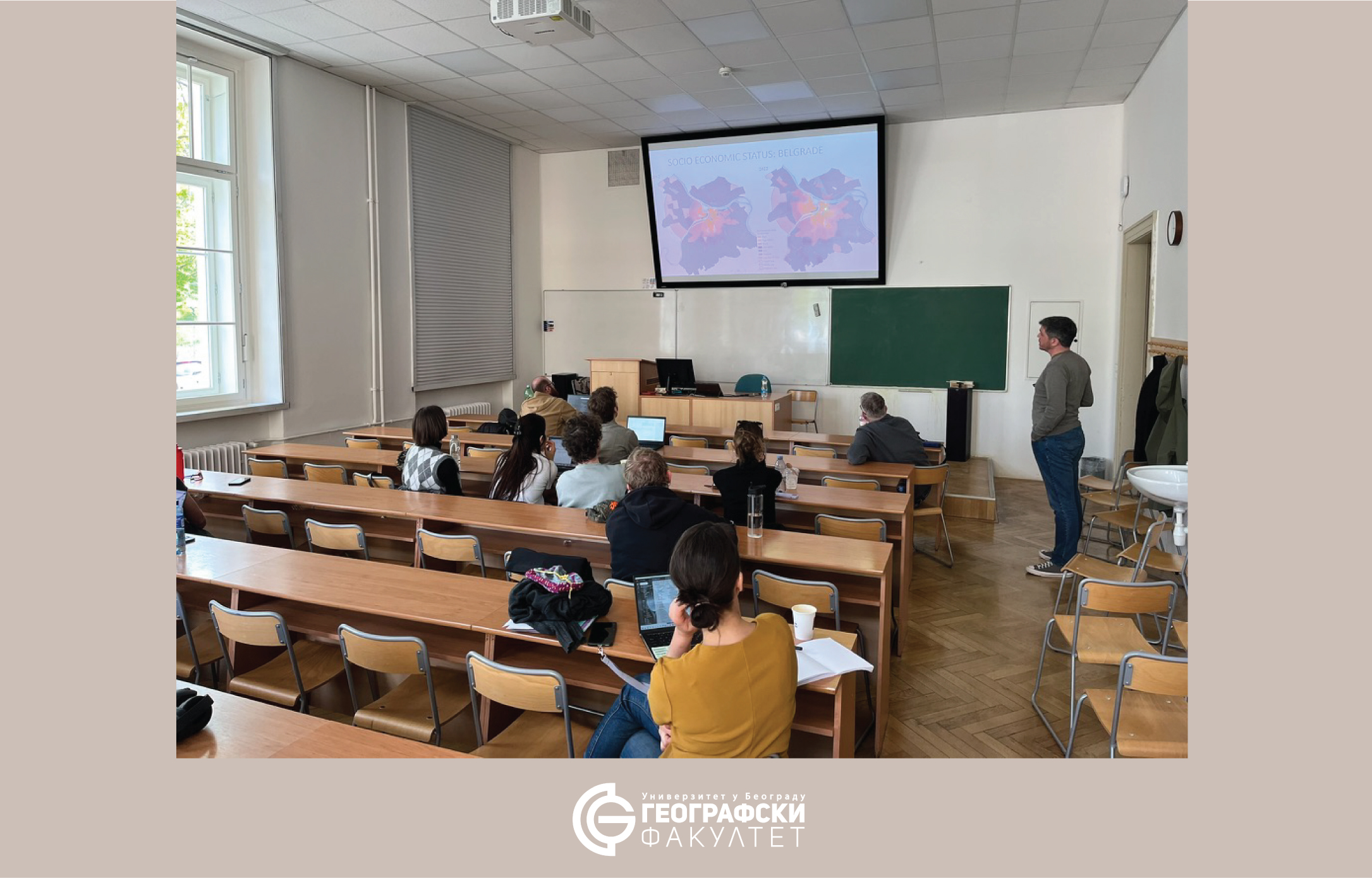 У оквиру CEEPUS GEOREGNET мреже, у периоду од 20. до 24. априла 2026. године, др Никола Јоцић и др Аљоша Будовић боравили су у посети Департману за друштвену географију и регионални развој Природно-математичког факултета Карловог универзитета у Прагу. Током боравка одржали су предавање под насловом „Београд у транзицији: урбане и социјалне промене у Београду од 2000. године”,